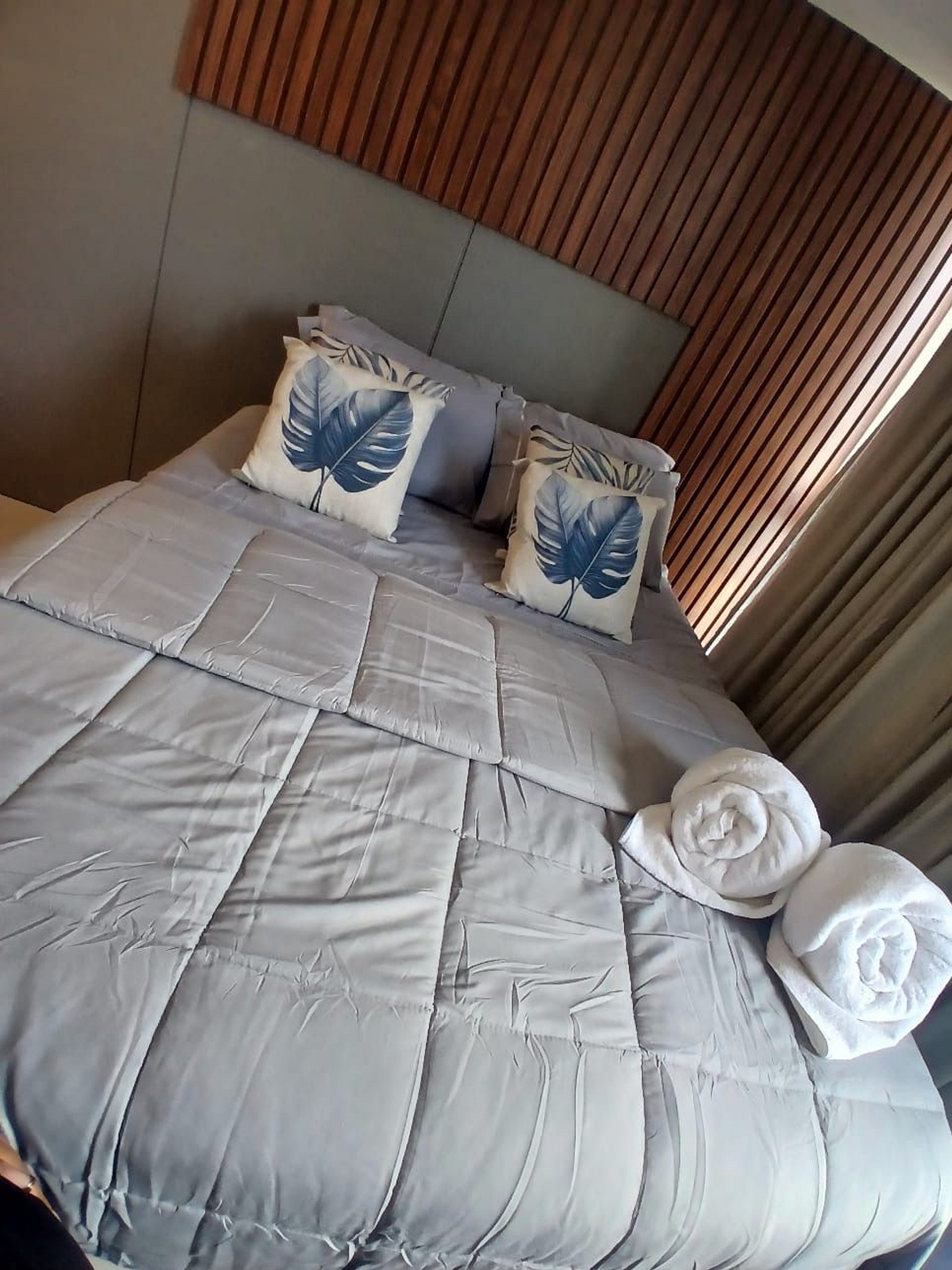 O apartamento possui uma cama queen que acomoda 02x adultos e 01x criança. Possui cozinha compacta equipada com micro-ondas, frigobar, cafeteira e utensílios essenciais, além de Smart TV para seu entretenimento.