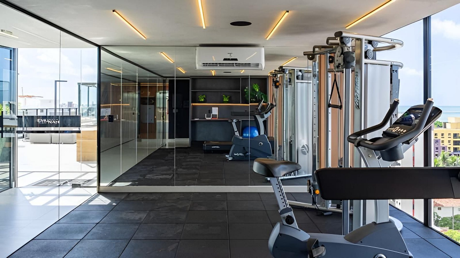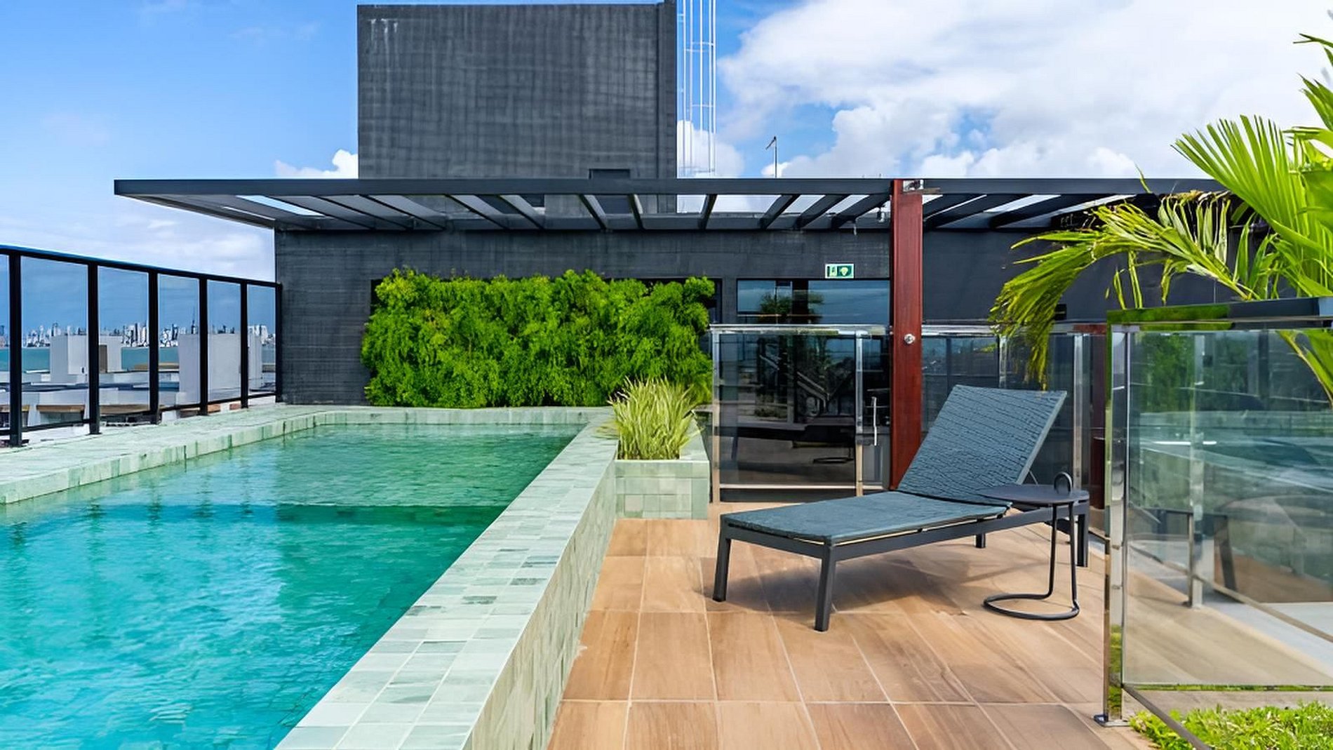 Entre as comodidades, destaca-se o estacionamento rotativo (vagas limitadas) no subsolo do mesmo edifício, facilitando a mobilidade. Os hóspedes podem ainda desfrutar de uma bela piscina na cobertura com uma vista panorâmica incrível, perfeita para momentos de lazer, e um ginásio para manter a forma durante a viagem.